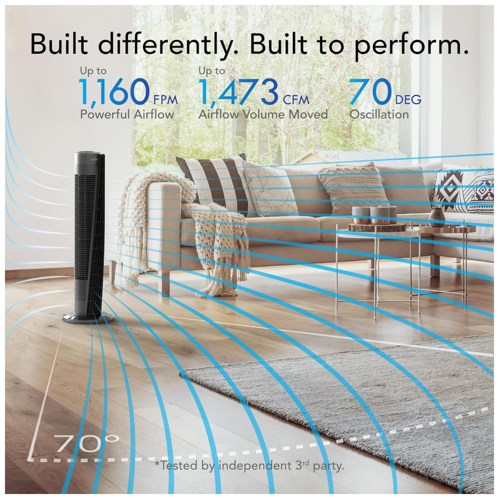 Ative a função de oscilação para um fluxo de ar refrescante em 130 graus, garantindo conforto em qualquer espaço.